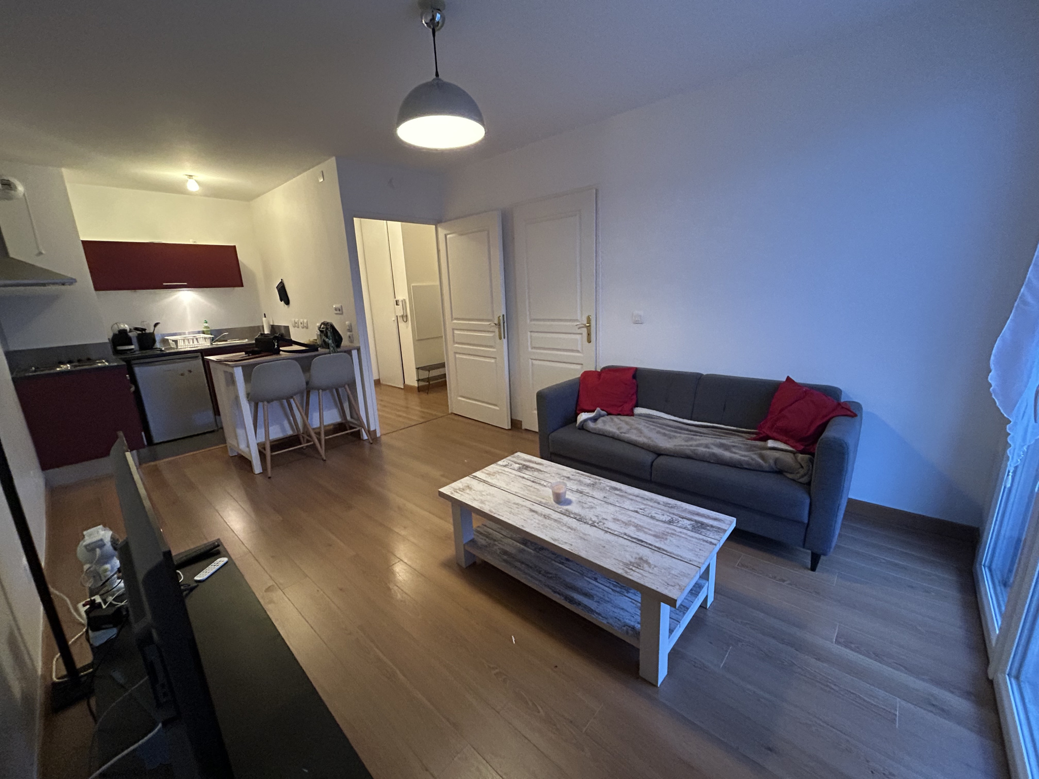 Situé au 1ER étage d’une résidence, APPARTEMENT TYPE 2 comprenant : Entrée avec placards, pièce de vie avec cuisine aménagée et équipée (Hotte-Plaque-Four-réfrigérateur), chambre avec placards, salle de bains avec wc. Balcon.