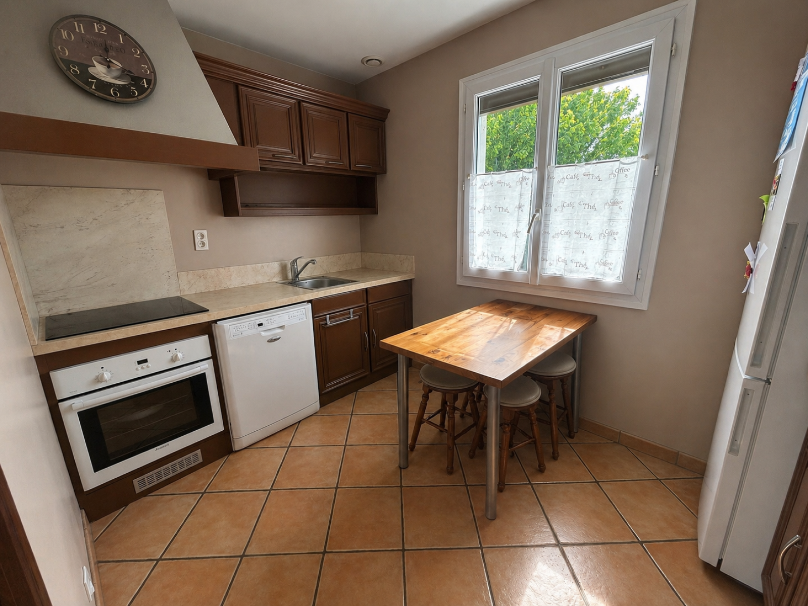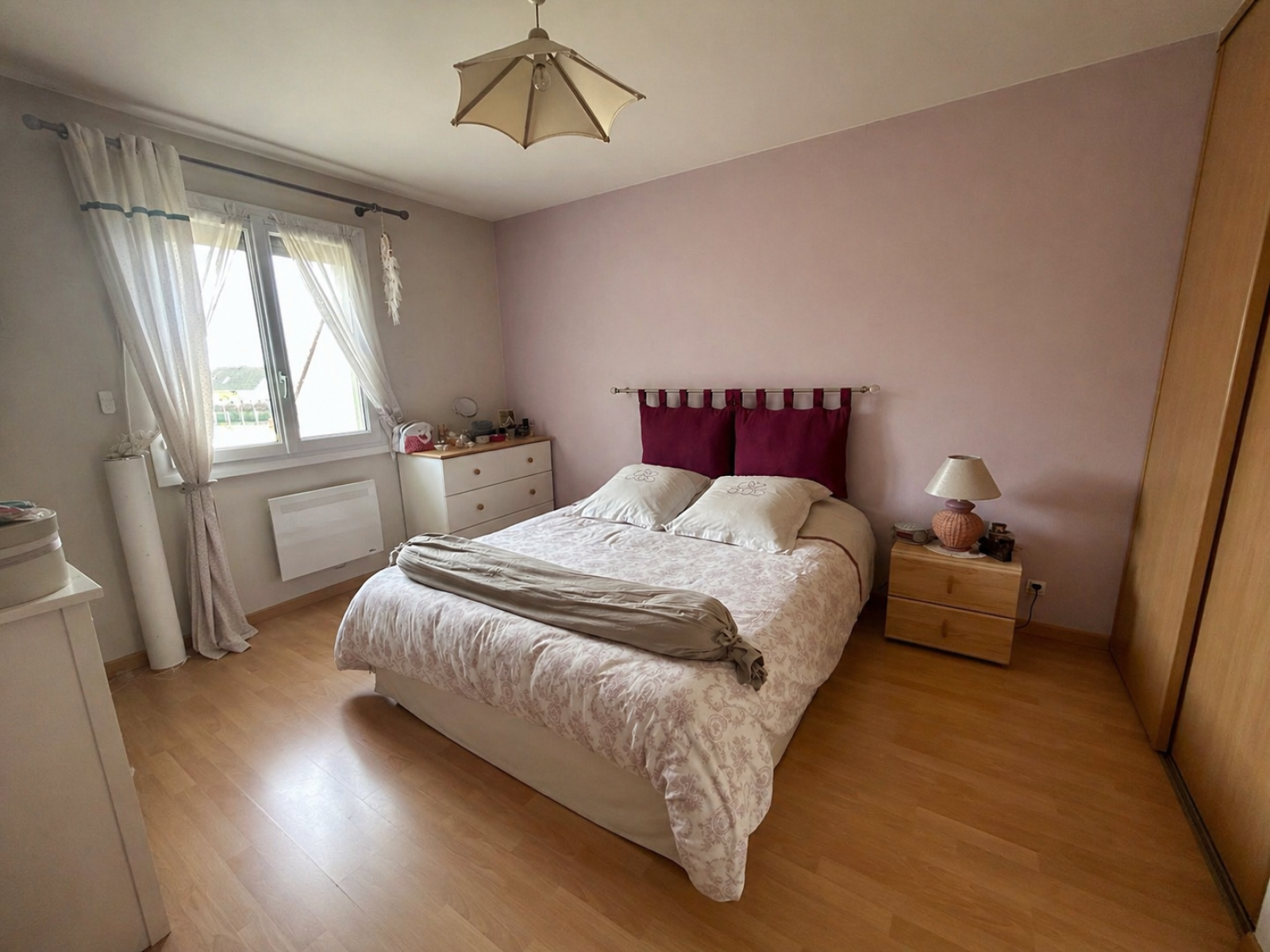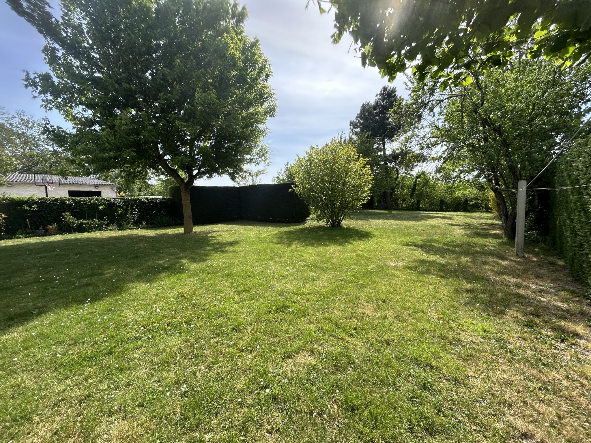 Sur un terrain de 1117 m2 clos et arboré, MAISON SUR SOUS-SOL SUR ELEVE, comprenant : Entrée avec placard, cuisine aménagée et équipée, pièce de vie avec cheminée et insert, dégagement, trois chambres dont deux avec rangements, salle de bains et wc séparé.
