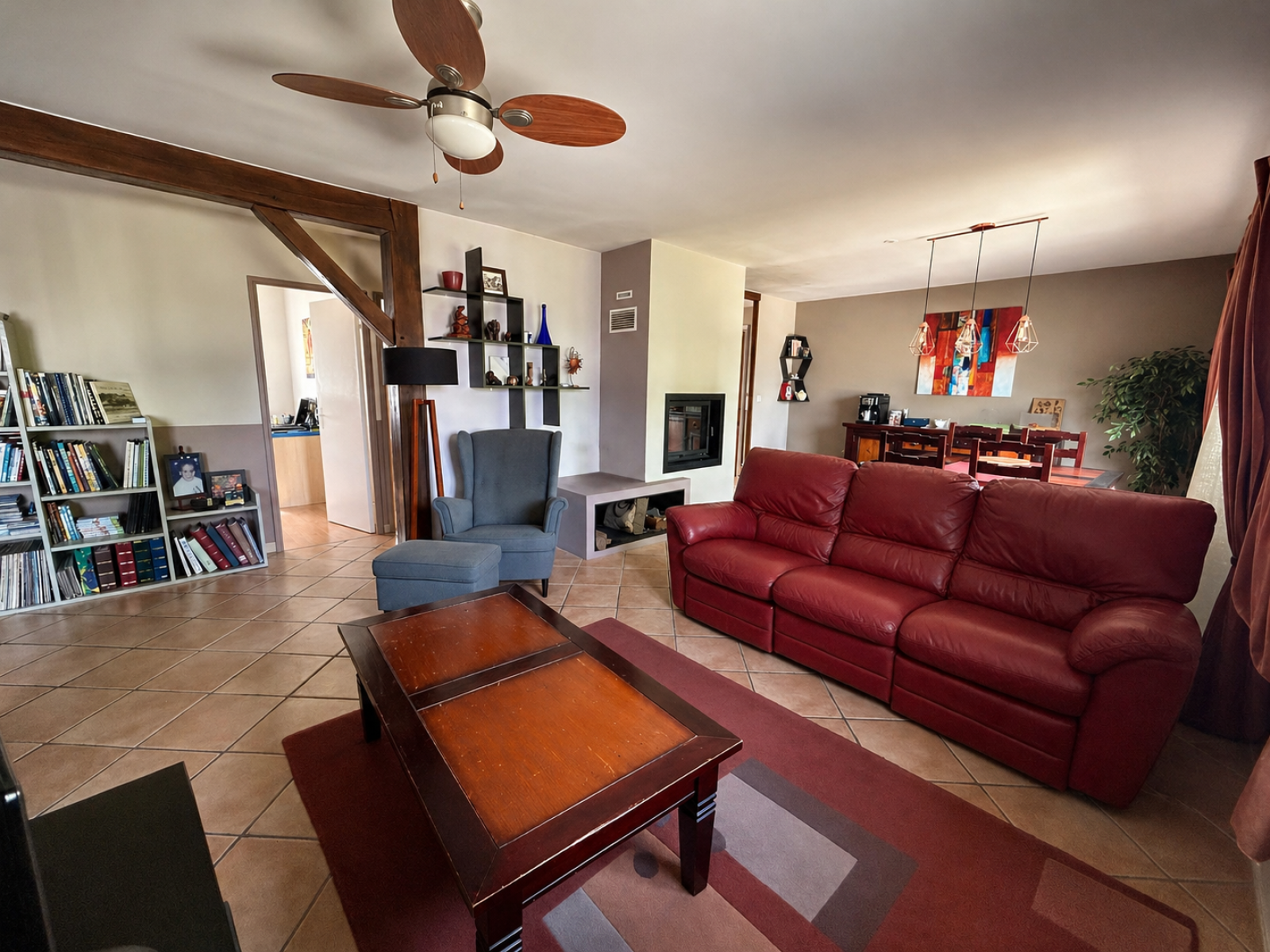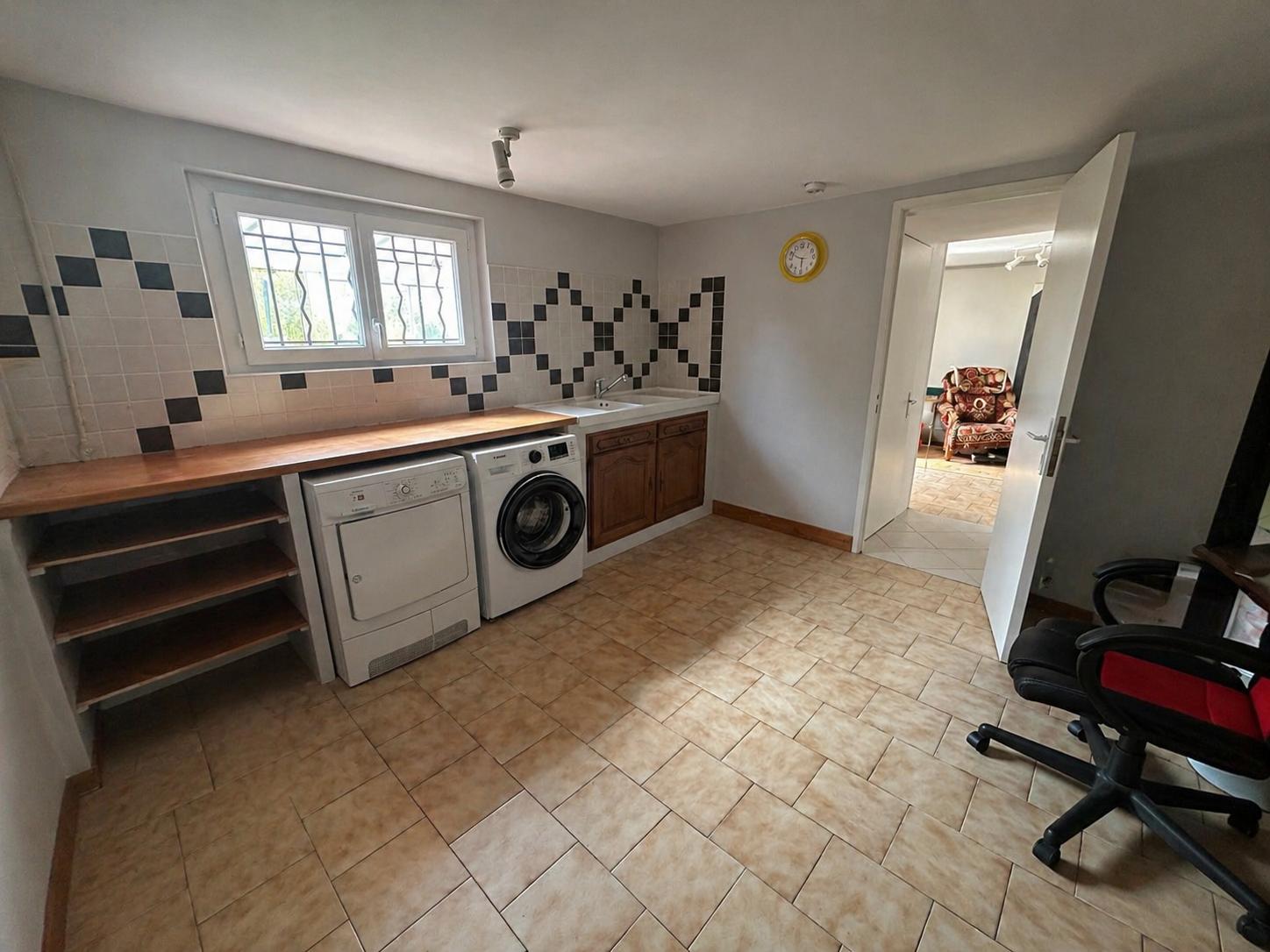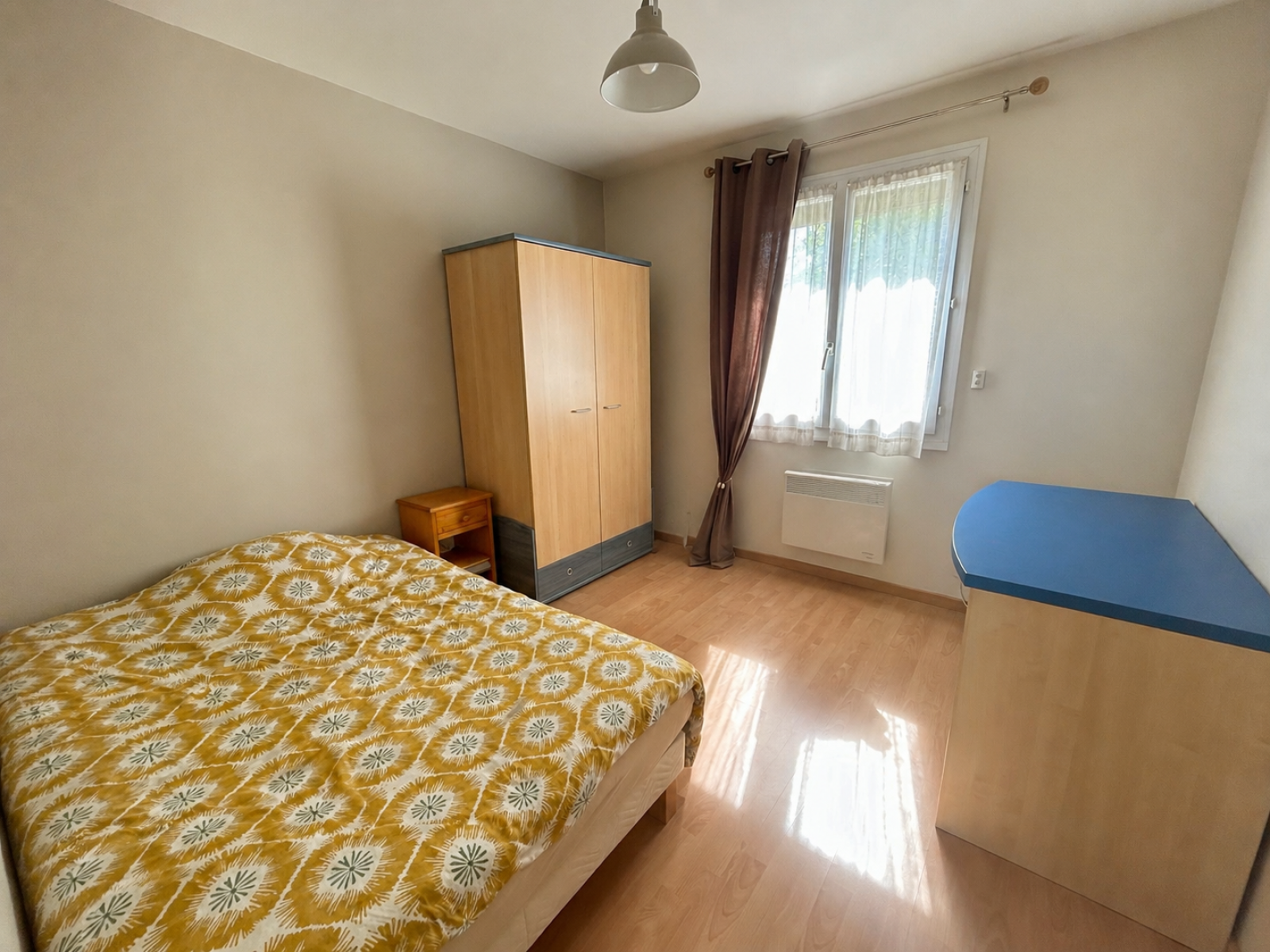 Sur un terrain de 1117 m2 clos et arboré, MAISON SUR SOUS-SOL SUR ELEVE, comprenant : Entrée avec placard, cuisine aménagée et équipée, pièce de vie avec cheminée et insert, dégagement, trois chambres dont deux avec rangements, salle de bains et wc séparé.