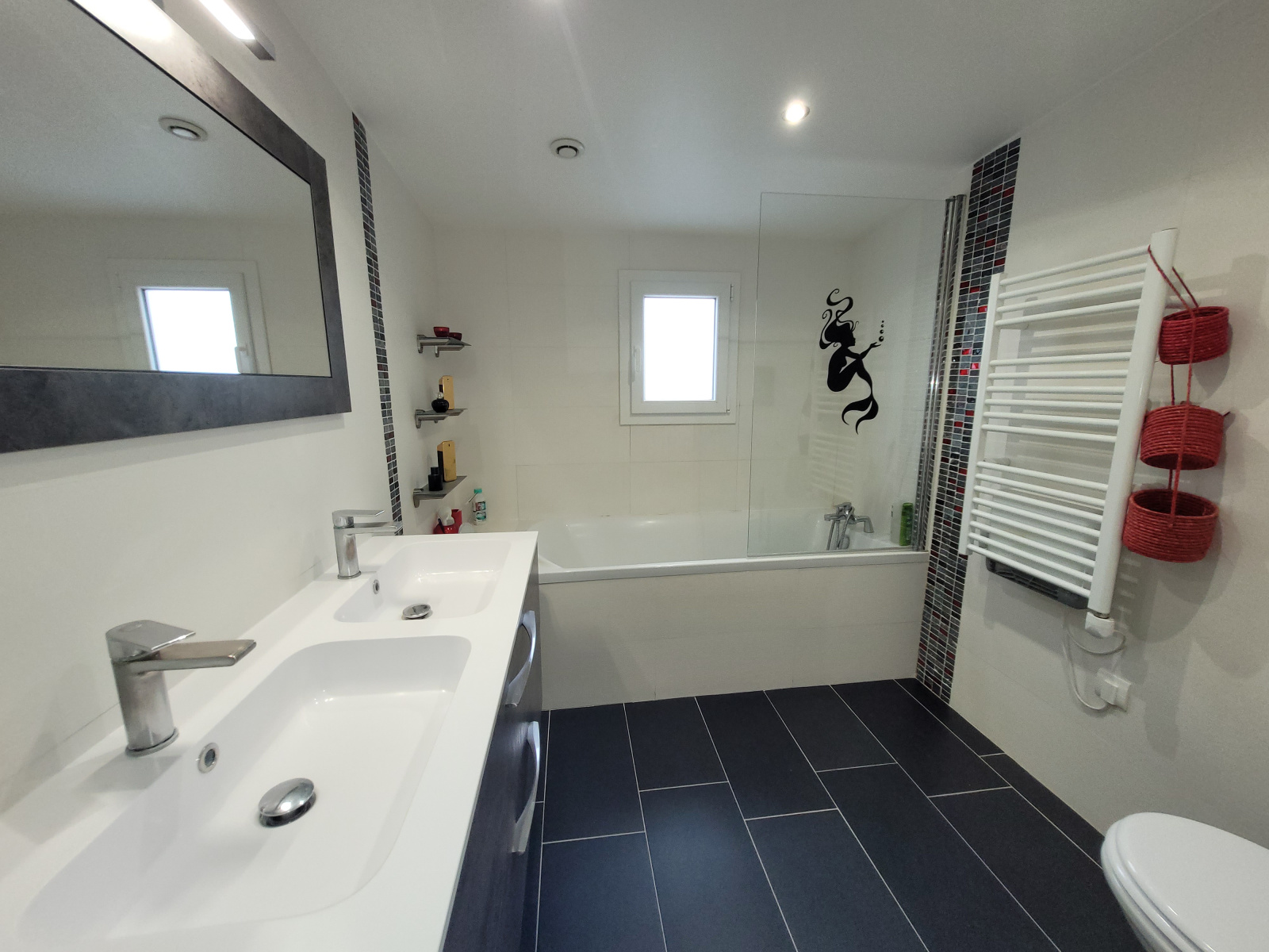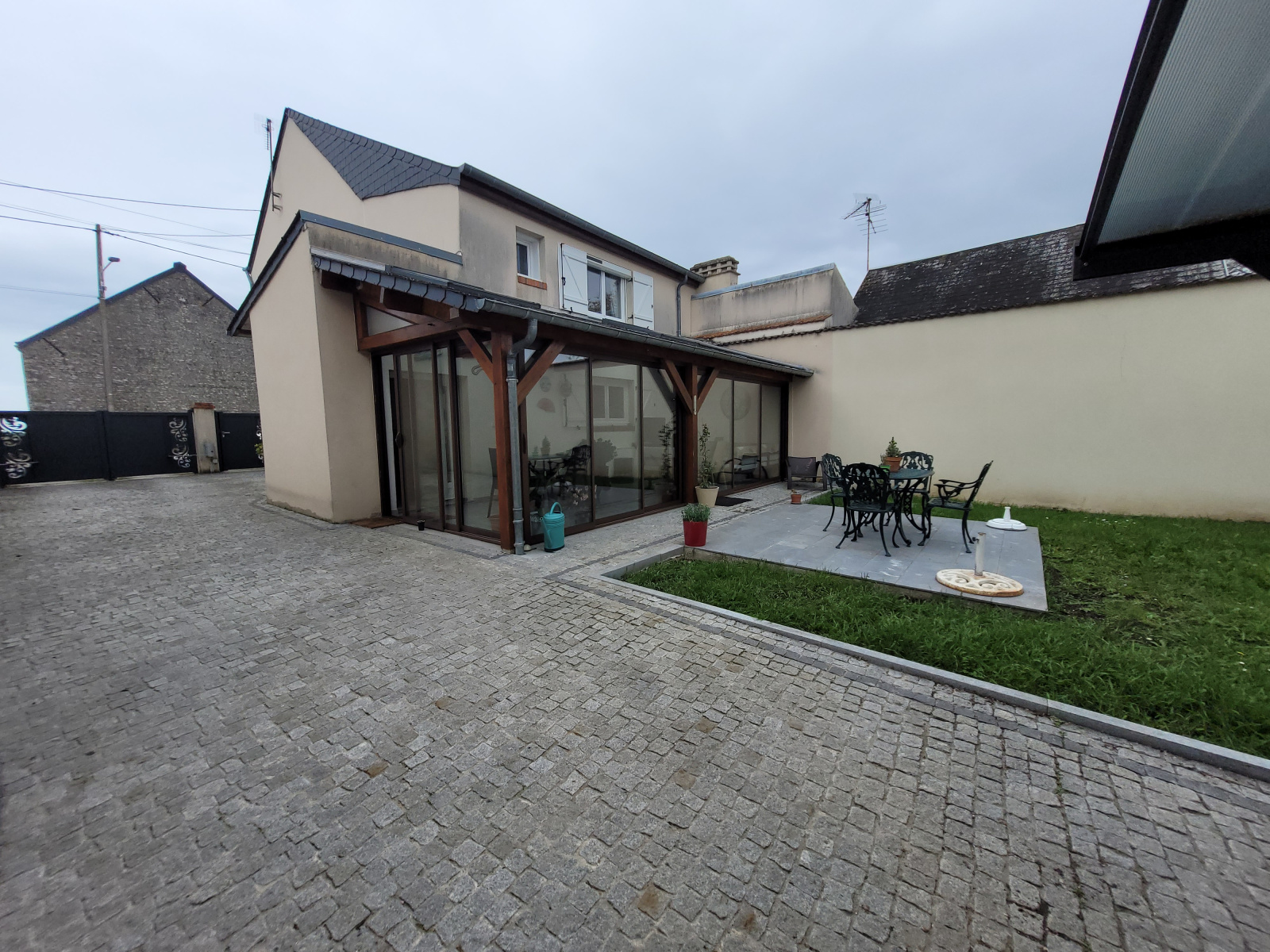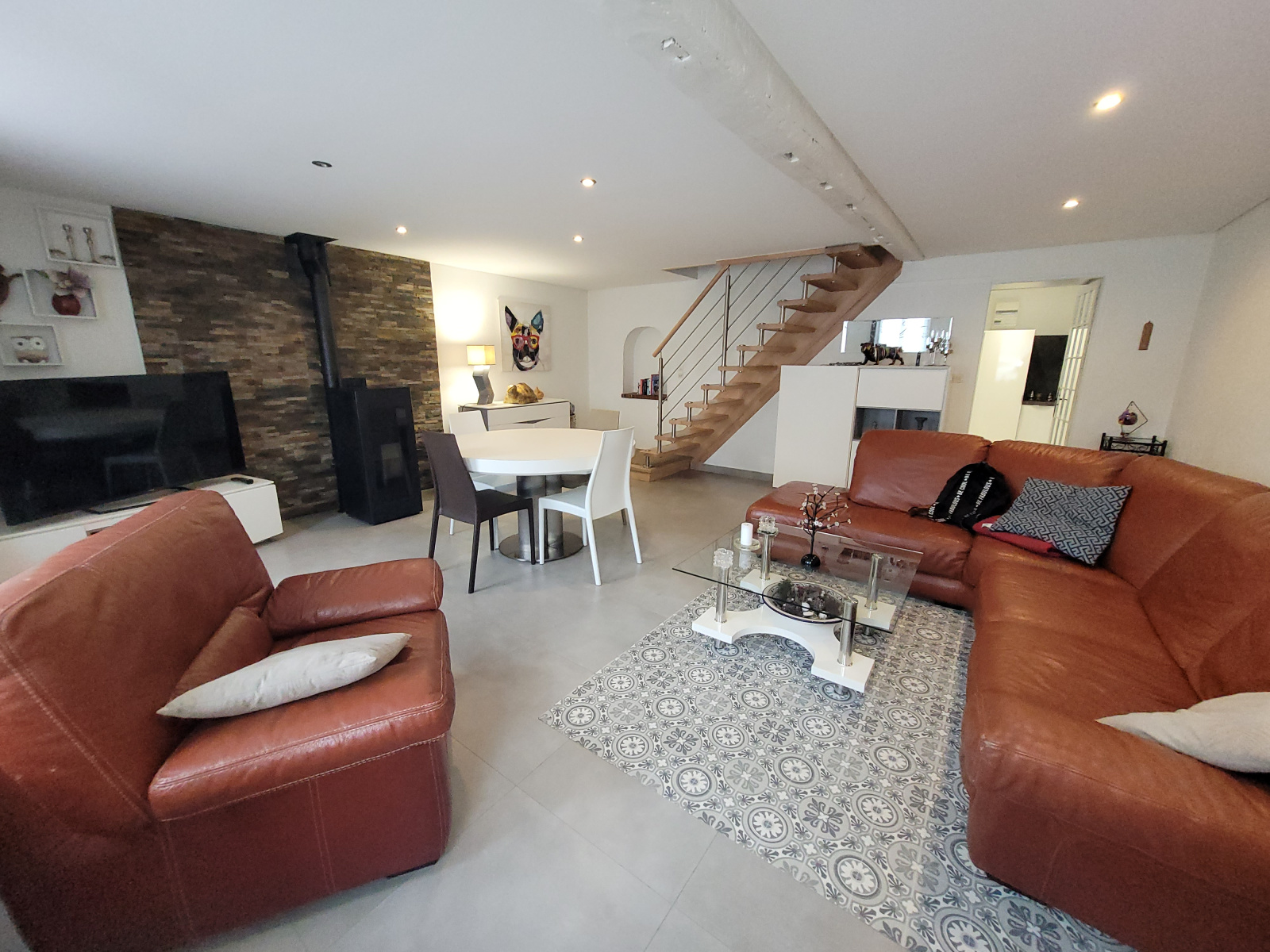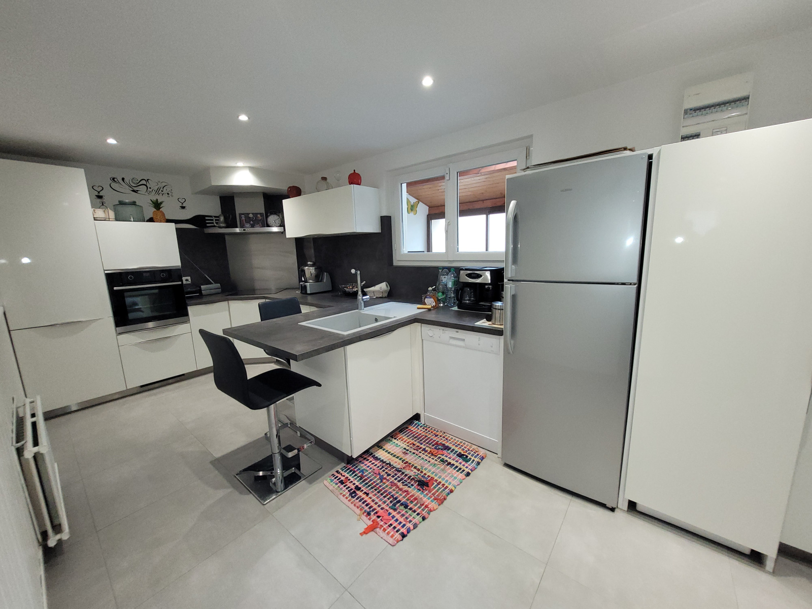 Chauffage électrique + bois et double vitrage pvc avec volets roulants électriques.