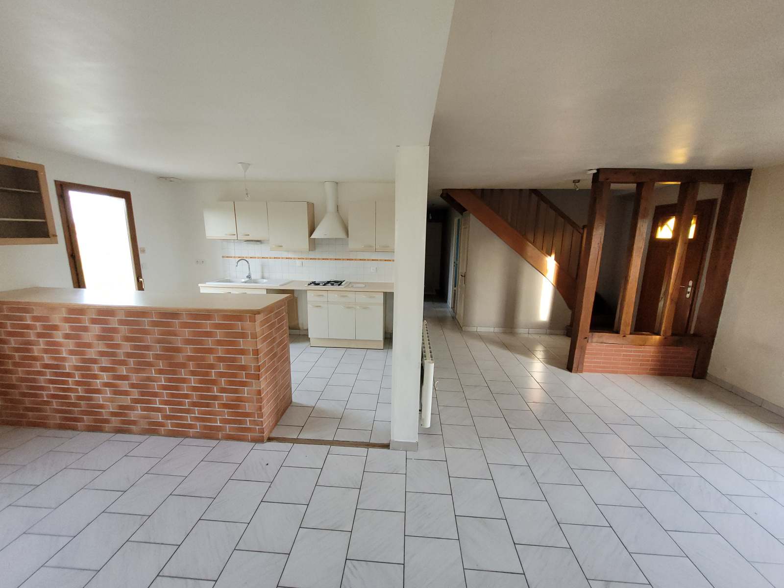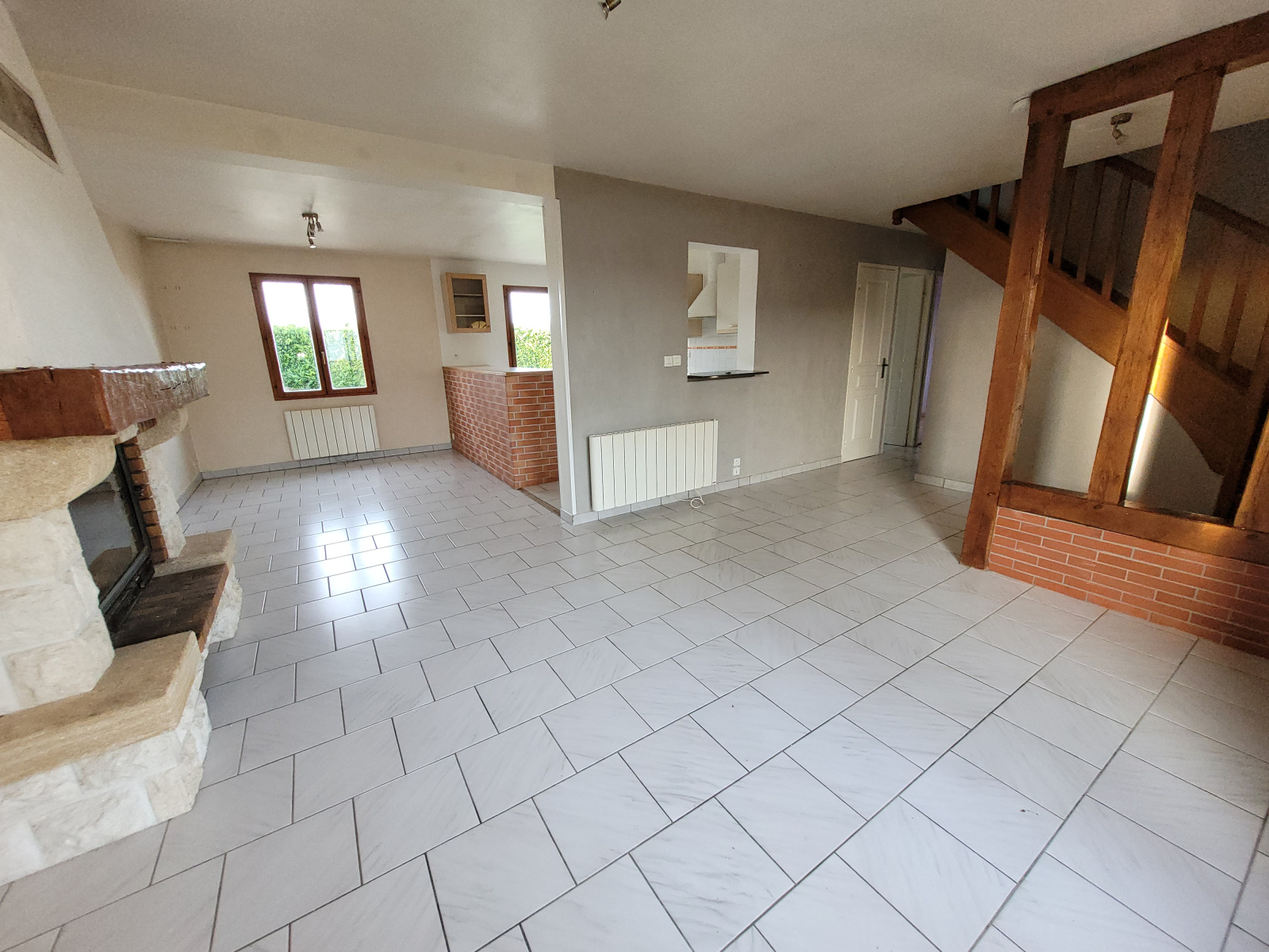 Sur un terrain d'environ 1040m² clos, PAVILLON comprenant : Entrée, salon-séjour avec cheminée, cuisine aménagée et équipée ouverte, dégagement, 2 chambres, salle de bains, wc.