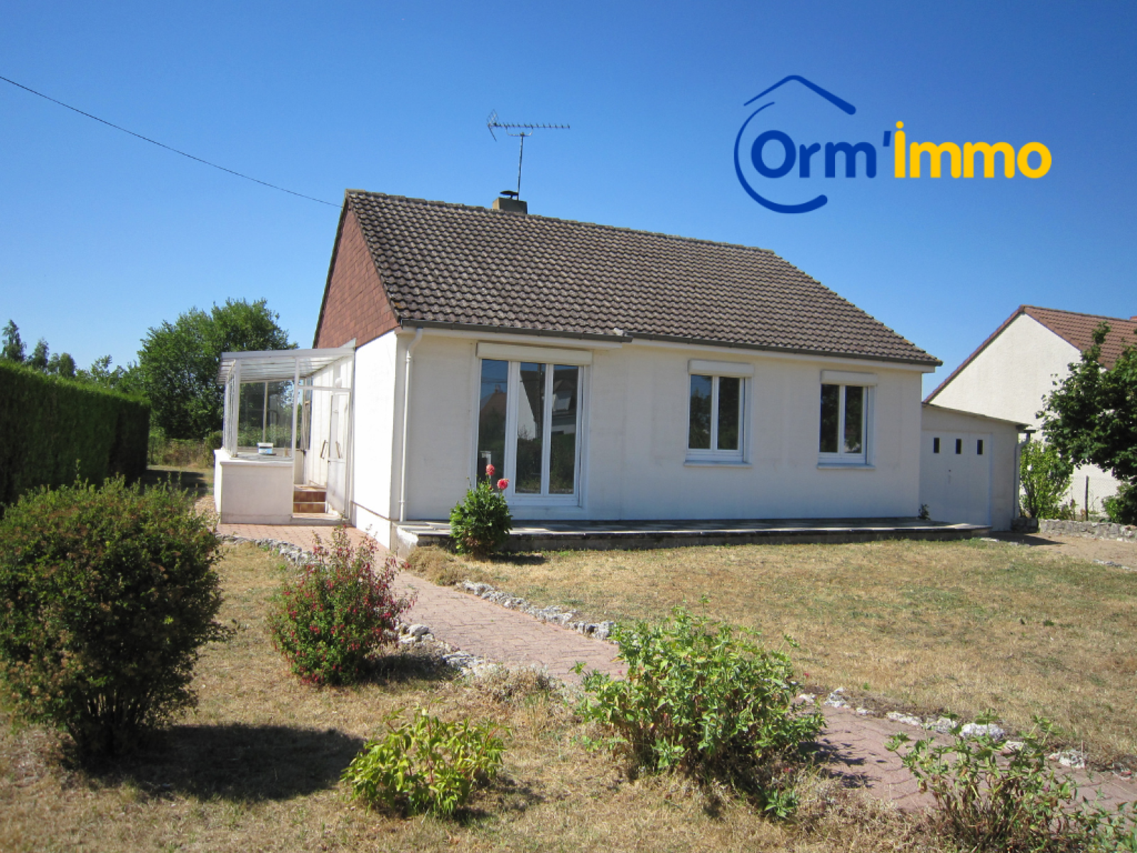 Sur un terrain de 1071 m2 clos, MAISON de plain-pied LOUEE comprenant : Entrée et dégagement, cuisine aménagée et équipée, salon-séjour, 2 chambres, salle d'eau, wc. Cellier. Garage et Atelier.