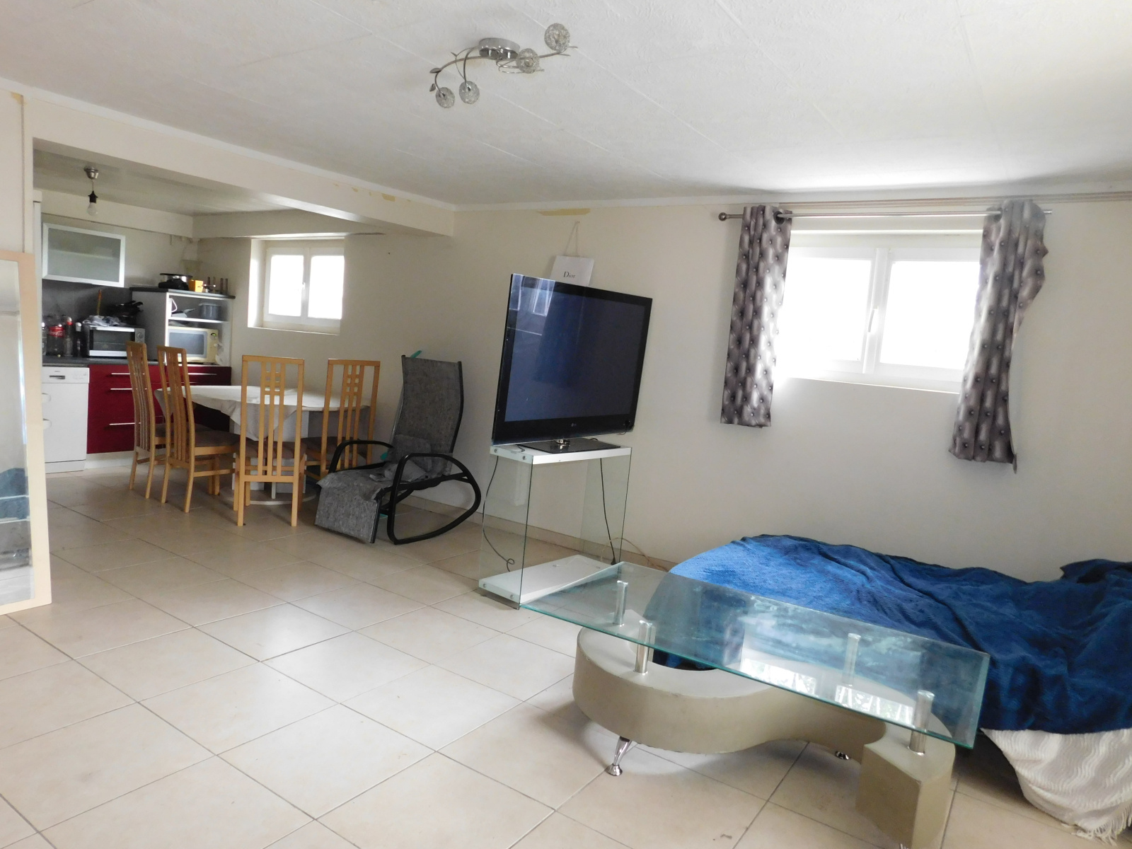 Au sous-sol : Partie garage, chaufferie et logement indépendant de type 2 comprenant pièce de vie ouverte sur une kitchinette, chambre et salle d'eau avec wc.