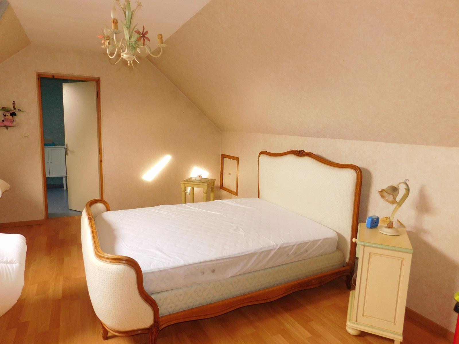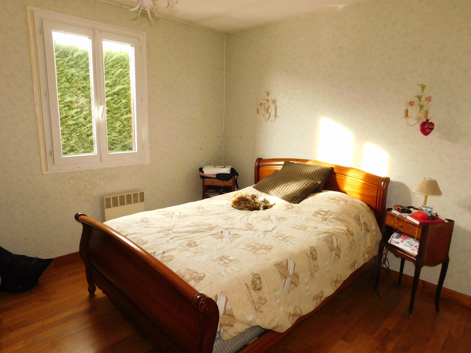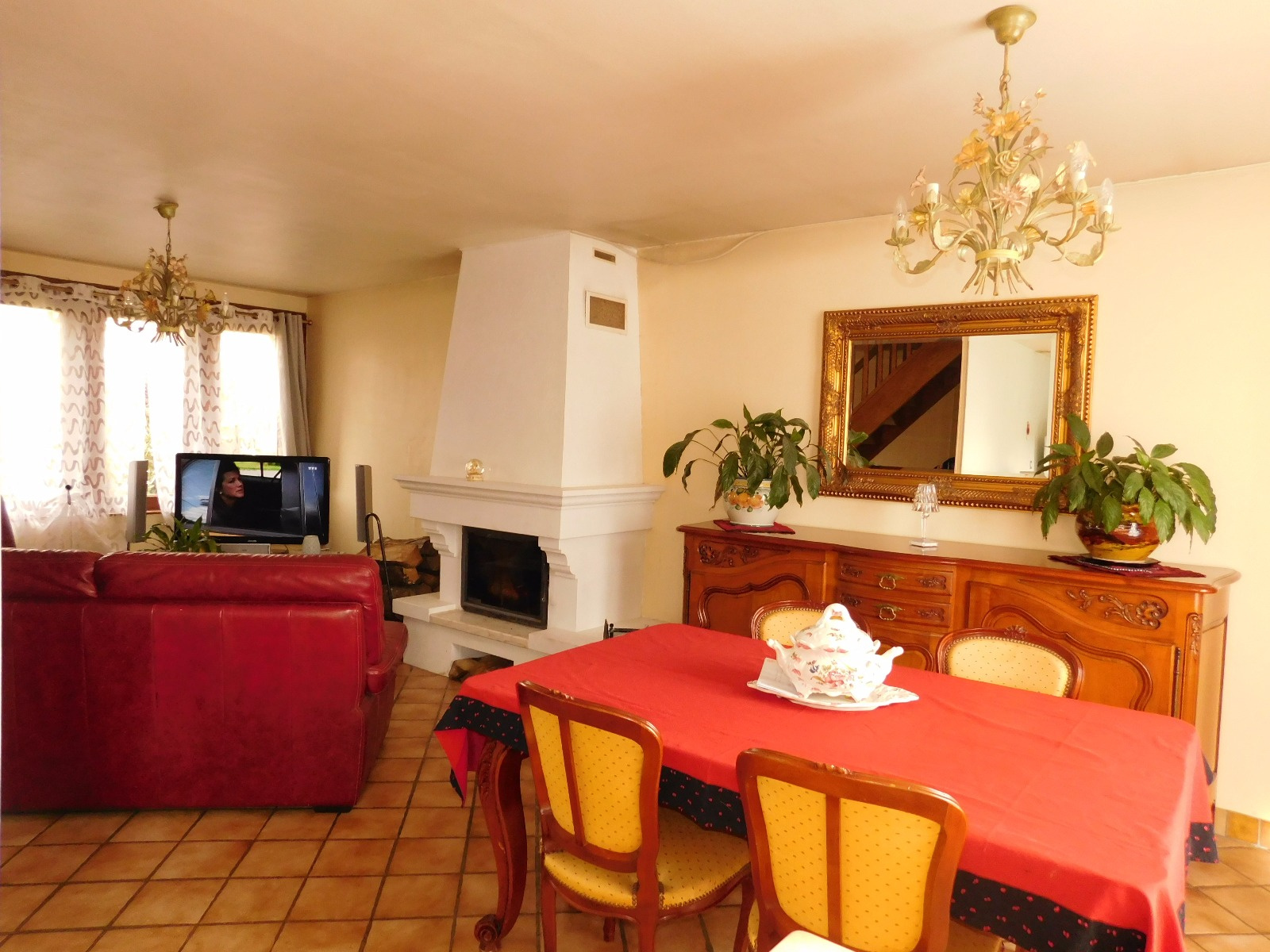 En exclusivité, sur environ 430 m2 clos, PAVILLON des années 1985, comprenant: vaste salon-séjour avec cheminée (foyer fermé), cuisine équipée ouverte, dégagement, bureau, chambre, salle d'eau et wc. A l'étage: palier, 2 grandes chambres dont une avec salle d'eau privative. Garage et cellier. Chauffage électrique et bois.