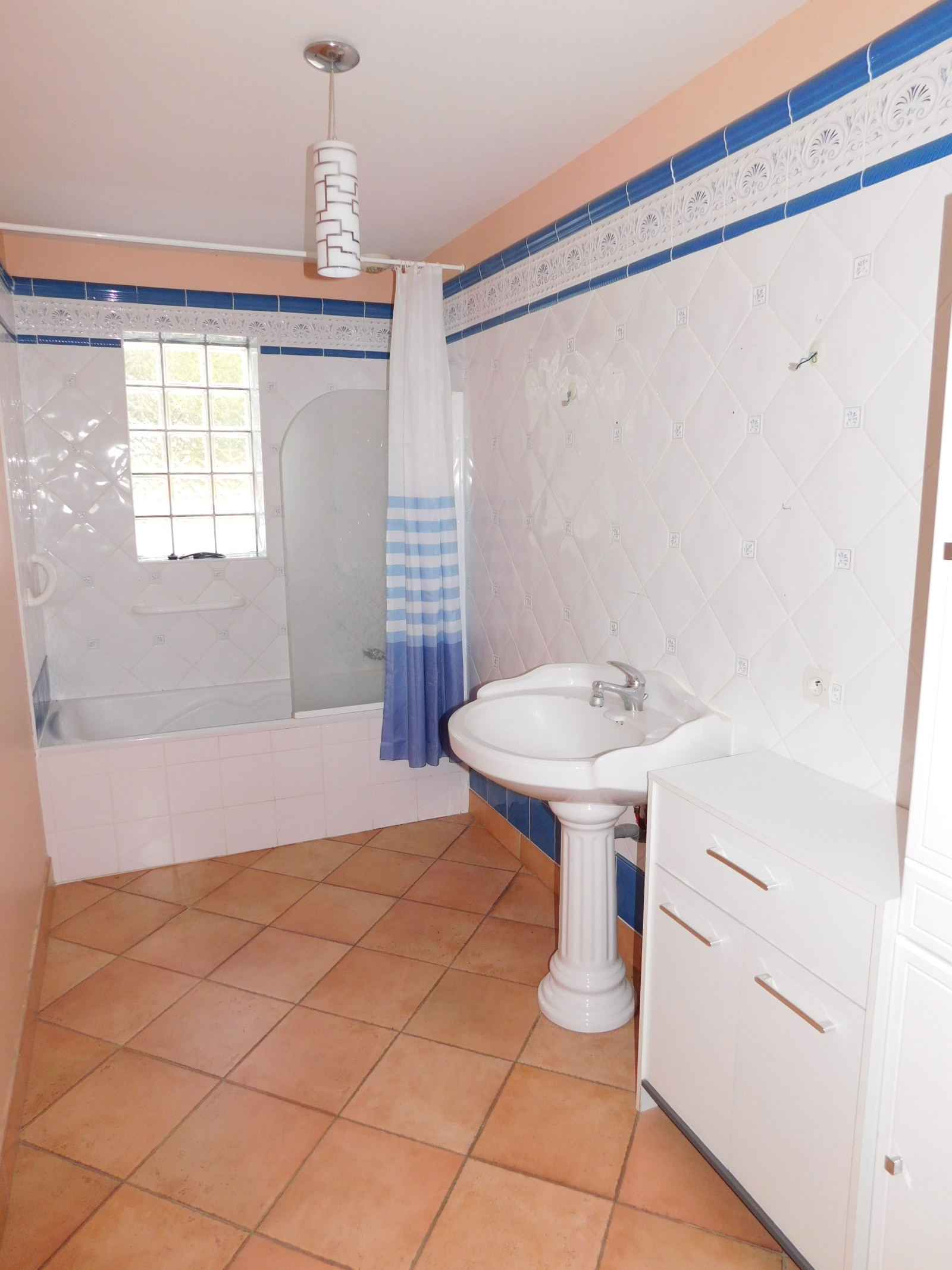 Sur environ 1000 m2 clos, PAVILLON de plain-pied, comprenant: salon-séjour, cuisine , dégagement , 2 chambres avec placards, salle de bains, wc, cellier. Comble aménageable. Chauffage électrique, tout à l'égout.