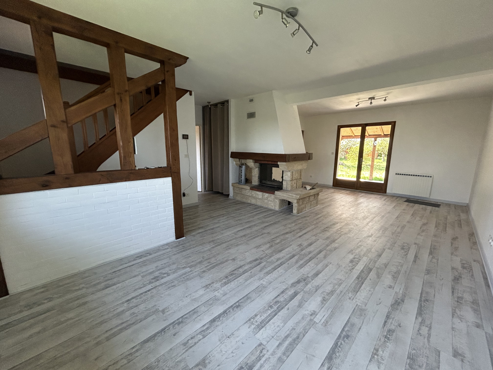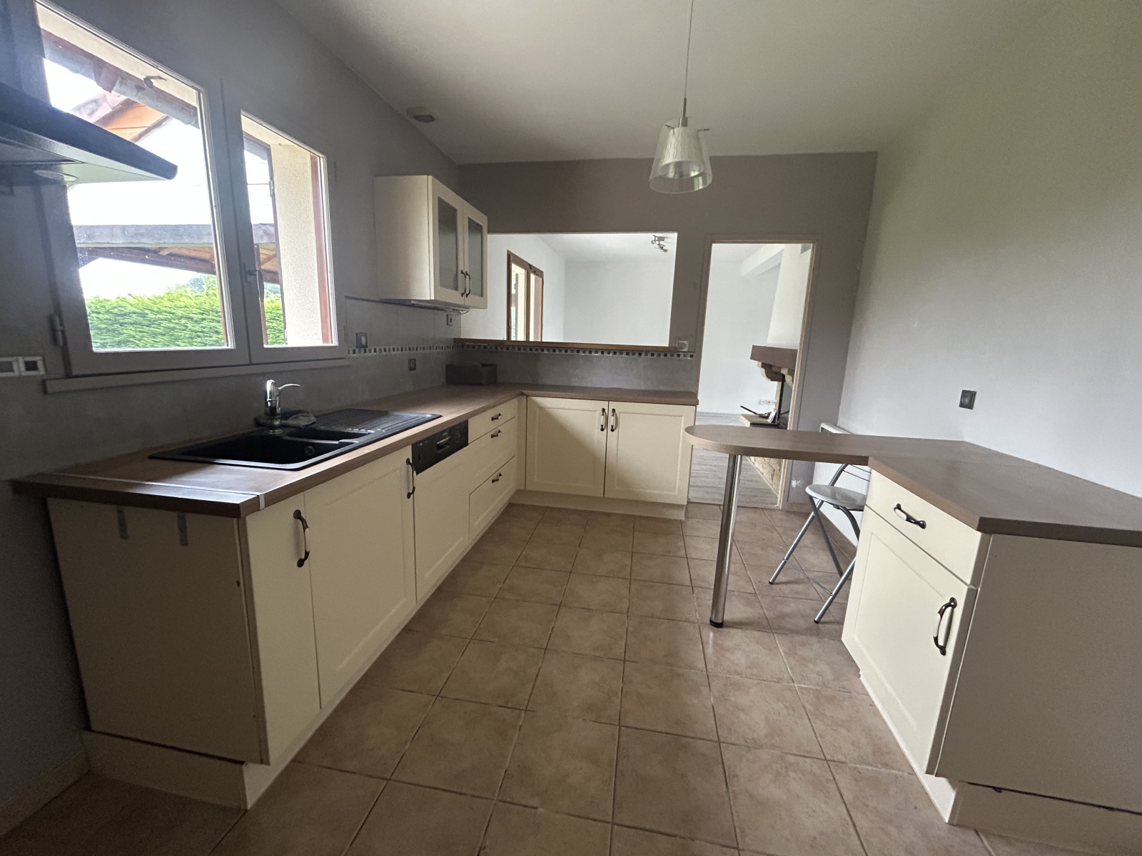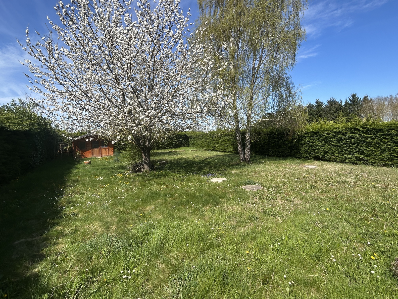 Sur un terrain de 1077 m2 clos, PAVILLON comprenant : Entrée, belle pièce de vie avec cheminée et insert double face, cuisine aménagée et équipée, dégagement, chambre parentale avec rangements et salle d'eau privative, wc, cellier et garage.